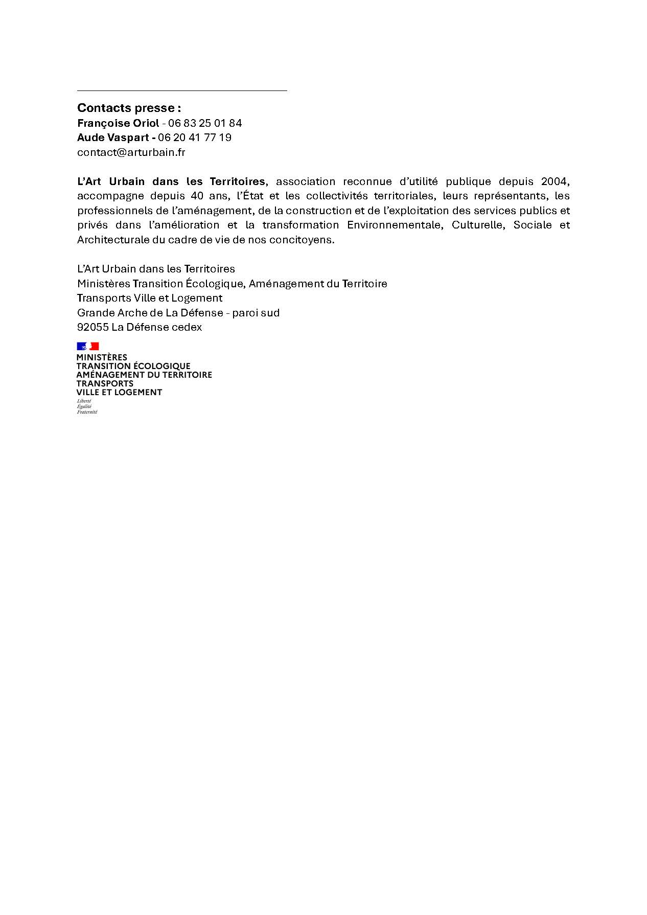 L’Art Urbain dans les Territoires, association reconnue d’utilité publique depuis 2004, accompagne depuis 40 ans, l’État et les collectivités territoriales, leurs représentants, les professionnels de l’aménagement, de la construction et de l’exploitation des services publics et privés dans l’amélioration et la transformation Environnementale, Culturelle, Sociale et Architecturale du cadre de vie de nos concitoyens.)