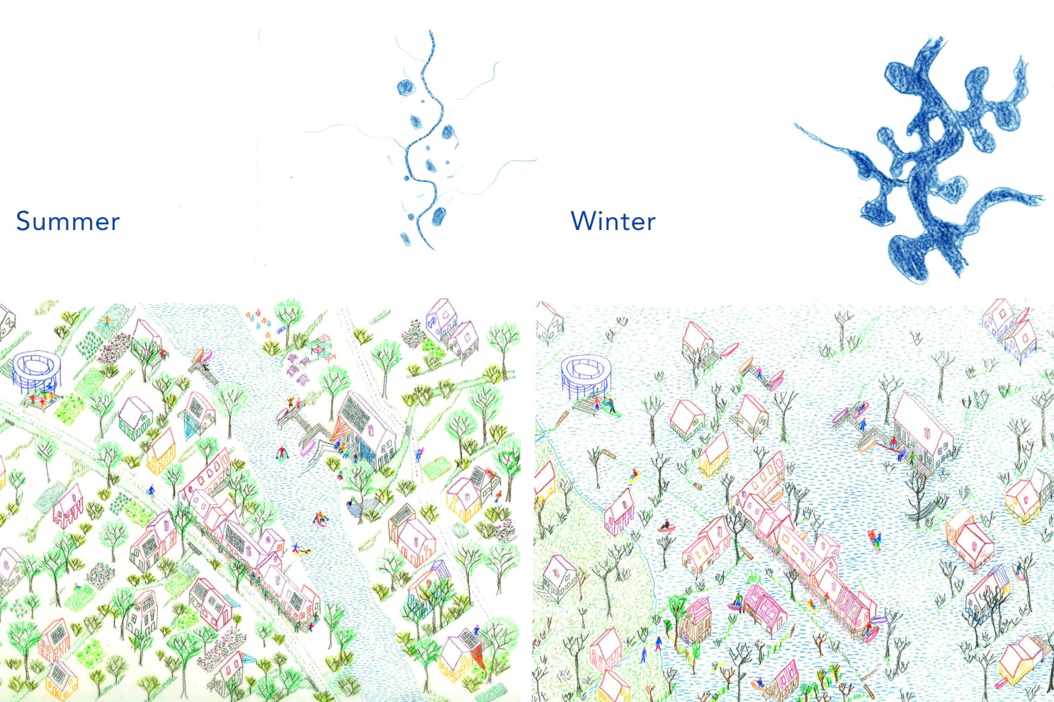 One proposal from the Hyderabad workshop gives this a concrete form: the House of Common Waters. Conceived as a community hub anchored around a lake, it brings together residents, researchers, and institutions to engage directly with water, through participatory governance, knowledge-sharing, and on-the-ground experimentation. The underlying logic is that water governance works when it is rooted at the scale where people actually live, and when the people who depend on a water body are also the ones responsible for it.
