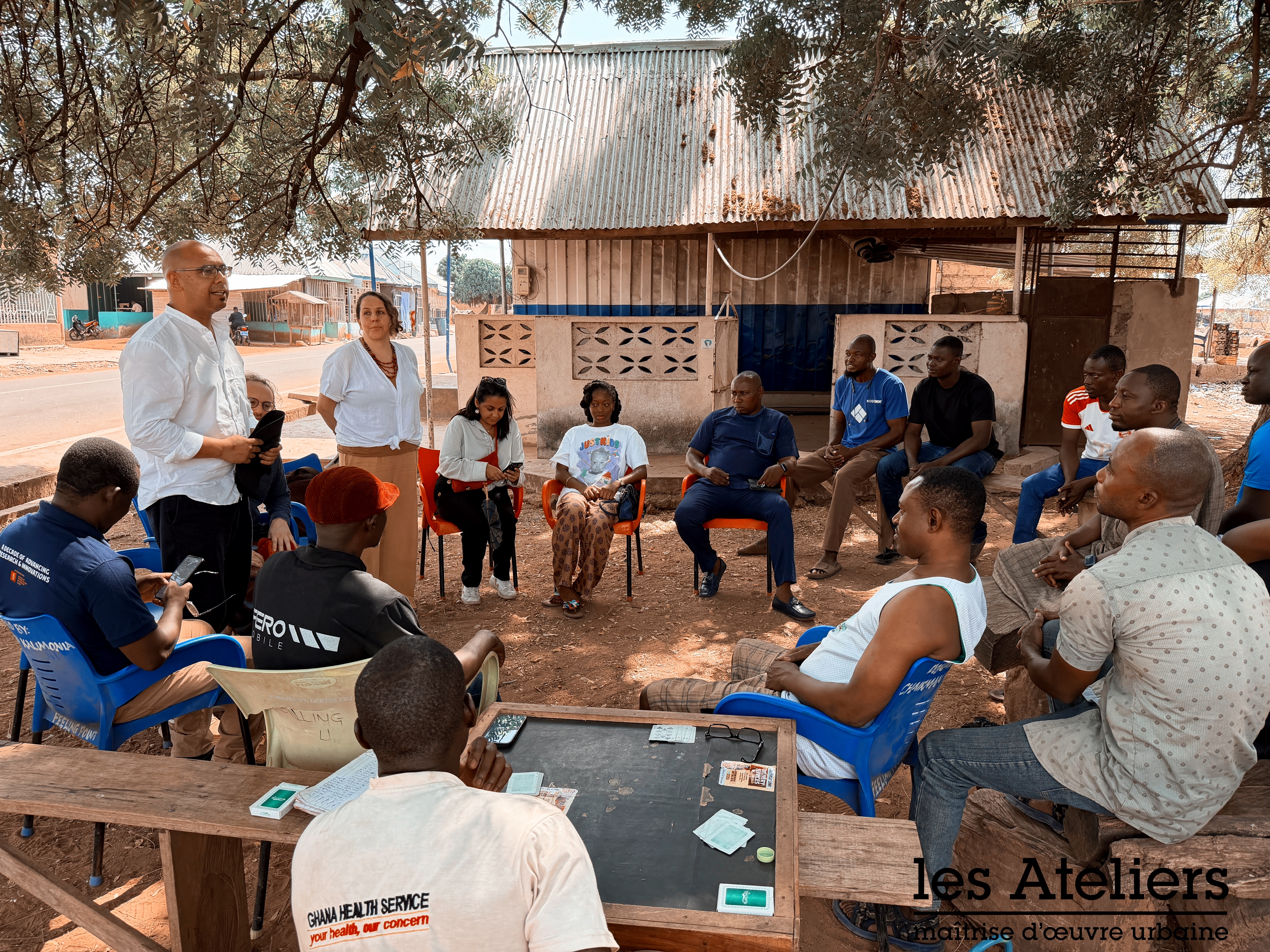 La mission s’est principalement déroulée à Tamale, métropole en forte croissance. Les premiers jours ont été consacrés à des rencontres avec les autorités locales, notamment les assemblées métropolitaines et municipales, afin d’identifier les priorités en matière d’aménagement urbain. Les échanges ont permis de mettre en lumière plusieurs enjeux majeurs : la gestion des déchets, l’accès à l’eau, la planification urbaine et la gouvernance territoriale.