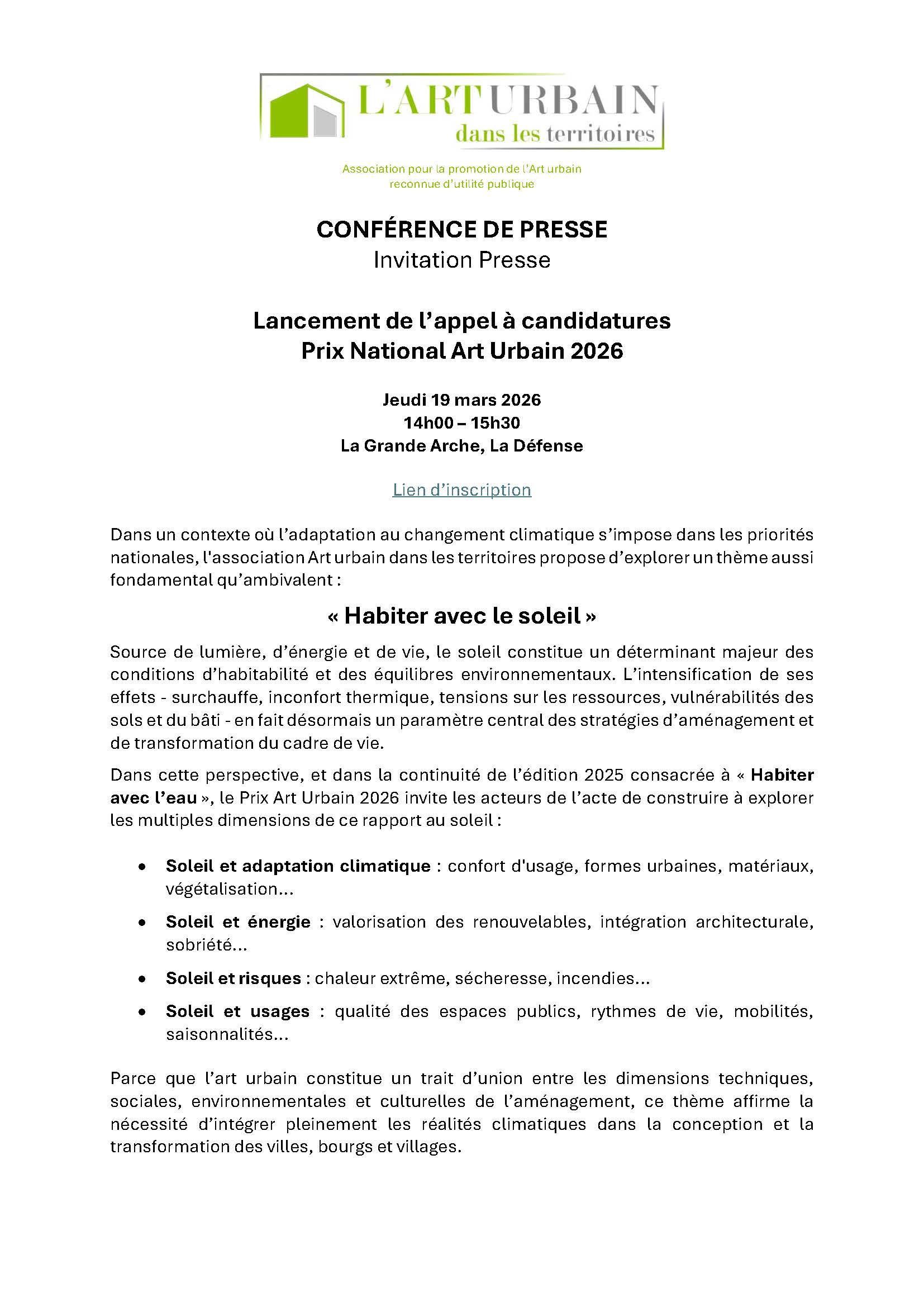 Conférence de presse pour le lancement de l’appel à candidatures du Prix National Art Urbain 2026